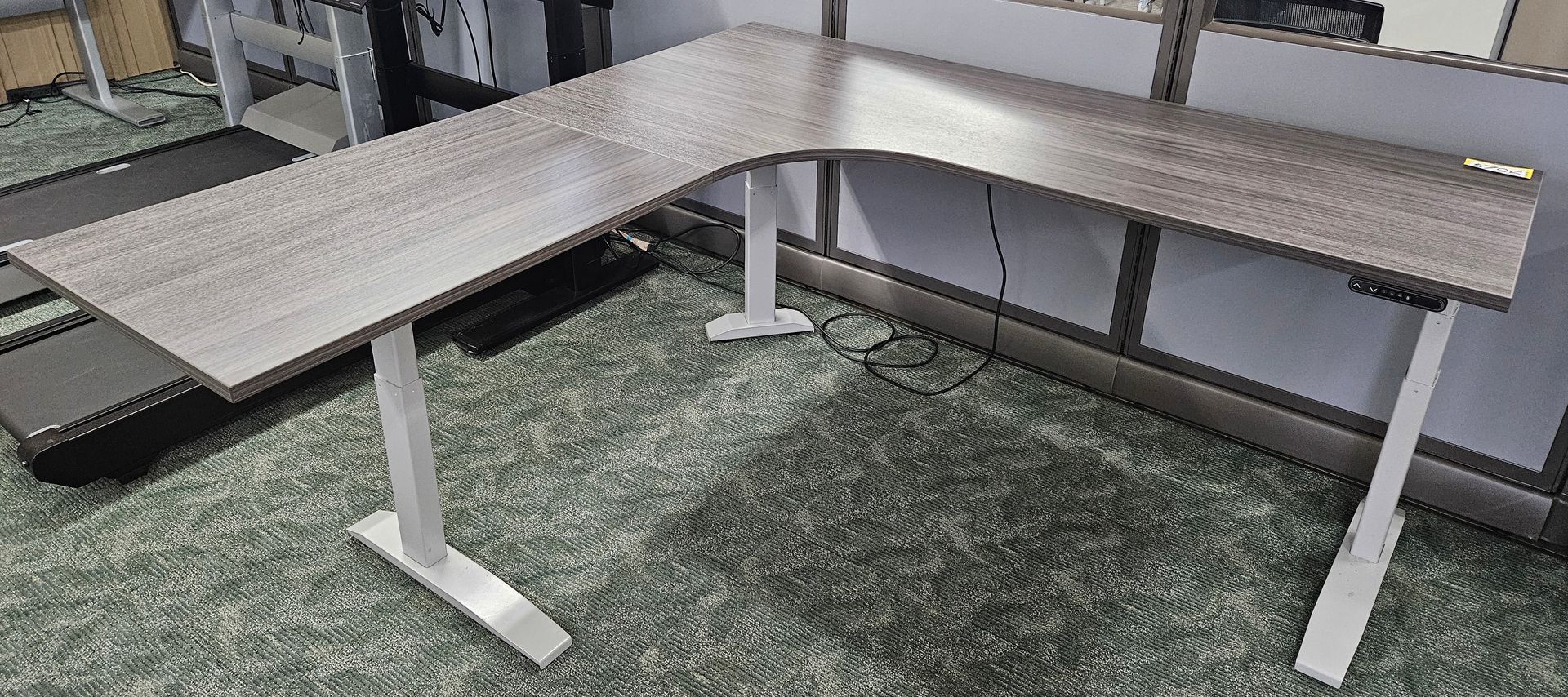 72 X 78 L-SHAPE PROGRAMMABLE ELECTRIC SIT STAND DESK; GREY/SILVER